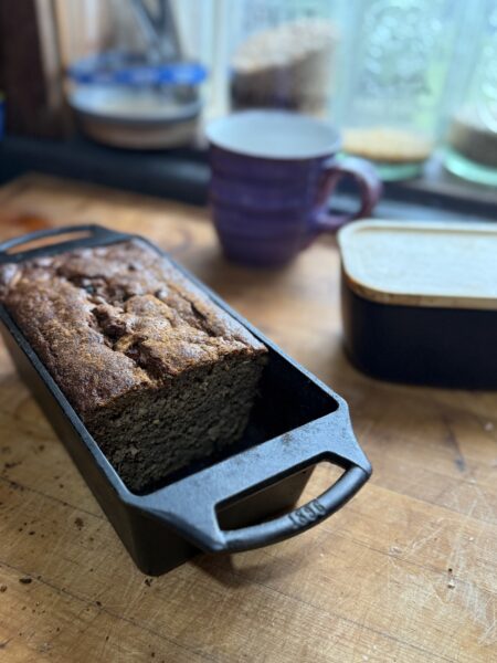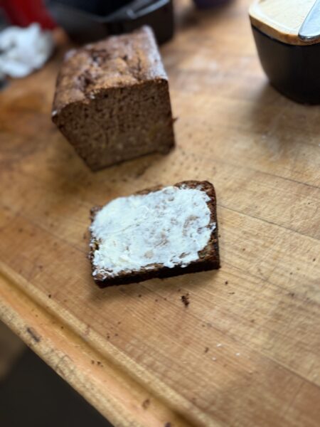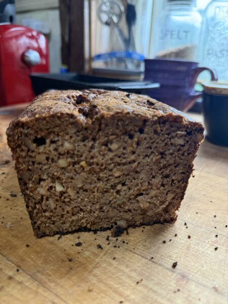 I have a lot of zucchini right now so we started baking with double chocolate zucchini bread made with Einkhorn that was unbelievably delicious.
