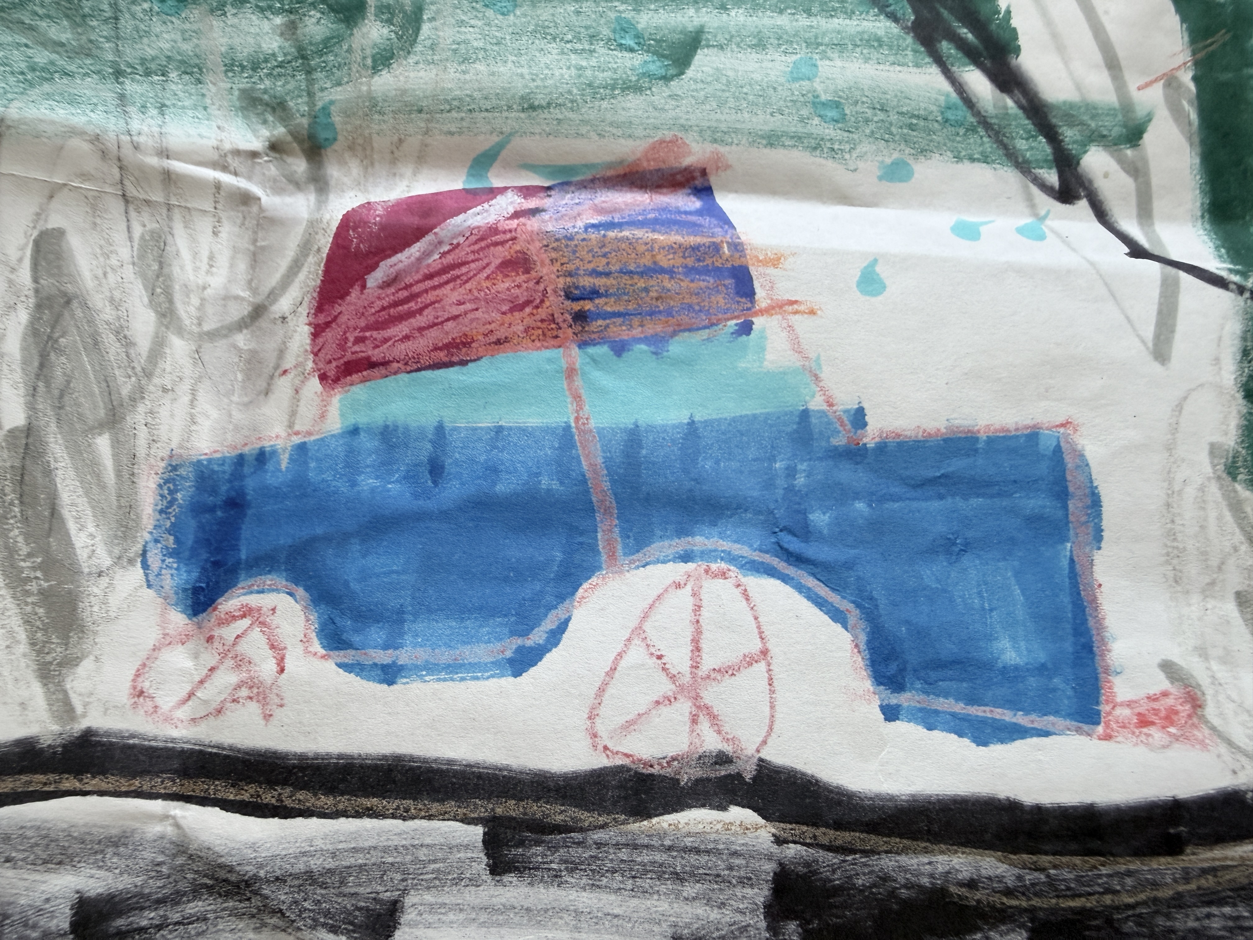 I don't have fancy cake equipment. I've got regular people tools, plus piping bags I never thought I'd use. So I baked my cake in one 9x9" stoneware baking pan, and poured the rest into 2 ramekins we use as dishes. I wanted to make a fire truck or some kind of vehicle he liked, since he loves drawing them - they are all over my house. But I wasn't sure how to do it.