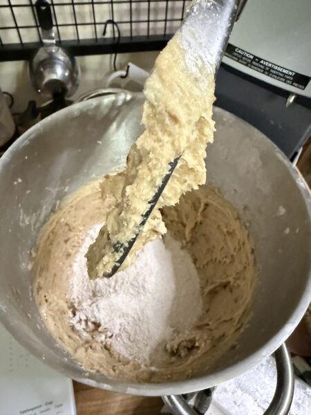 - Add the flour to the mixing bowl, and mix on LOW speed until JUST combined. Do not over-mix.